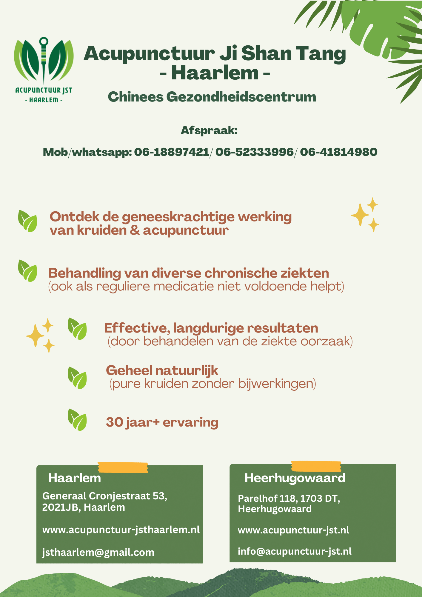 Wij zijn een praktijk, gespecialiseerd in Traditionele Chinese Geneeskunde. Met acupunctuur en kruidentherapie behandelen wij uiteenlopende chronische klachten.